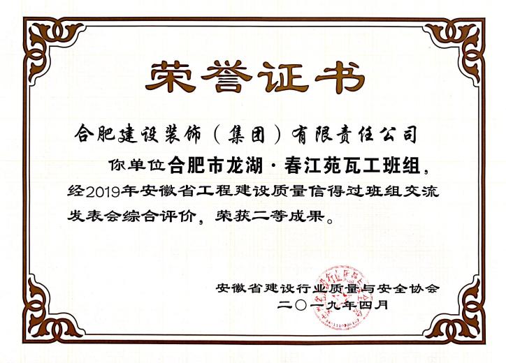 上一条:2019年安徽省工程建设质量信得过班组二等成果