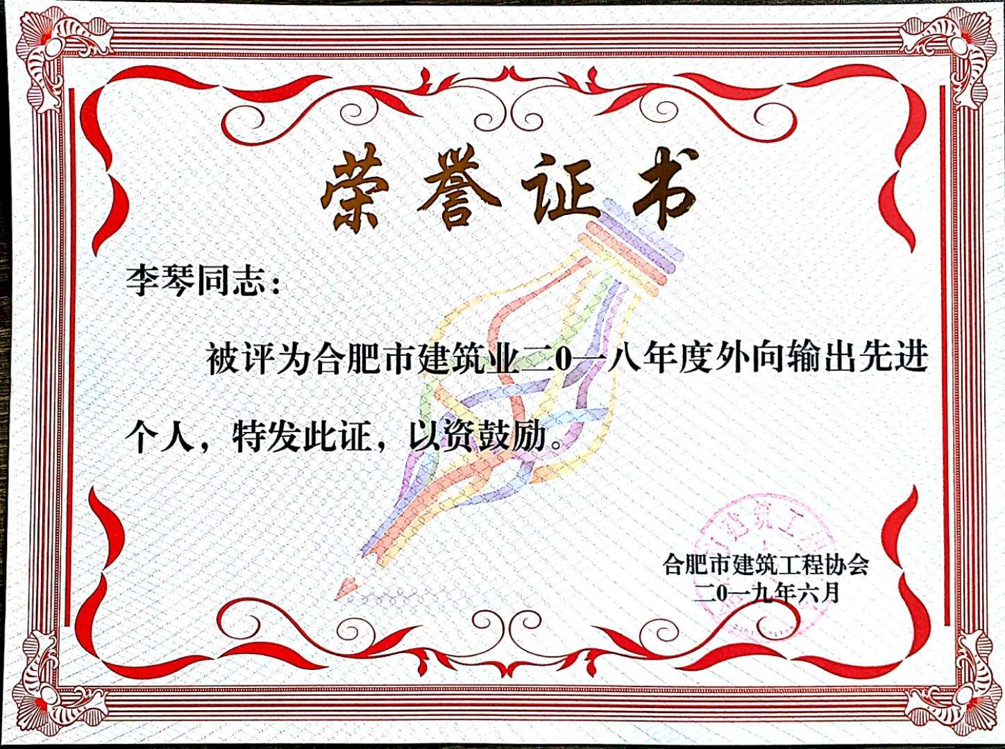 >李琴2018外向输出先进个人
